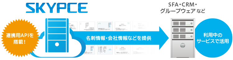 SKYPCEを「顧客情報のマスタ」と位置づけ、SFA/CRMとの自動連携機能を実装。