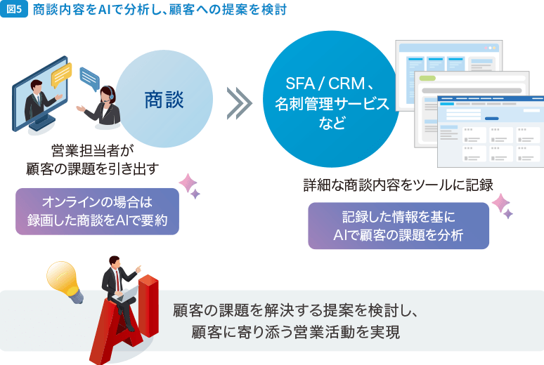 AI活用は、業務の効率化だけでなく、顧客の課題に寄り添う提案もサポートしてくれるのですね。